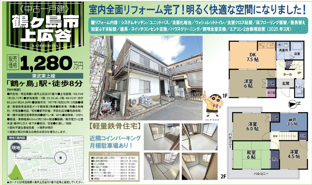 中古住宅 / 1,280万円 / 鶴ヶ島市大字上広谷 / 鶴ヶ島駅徒歩8分