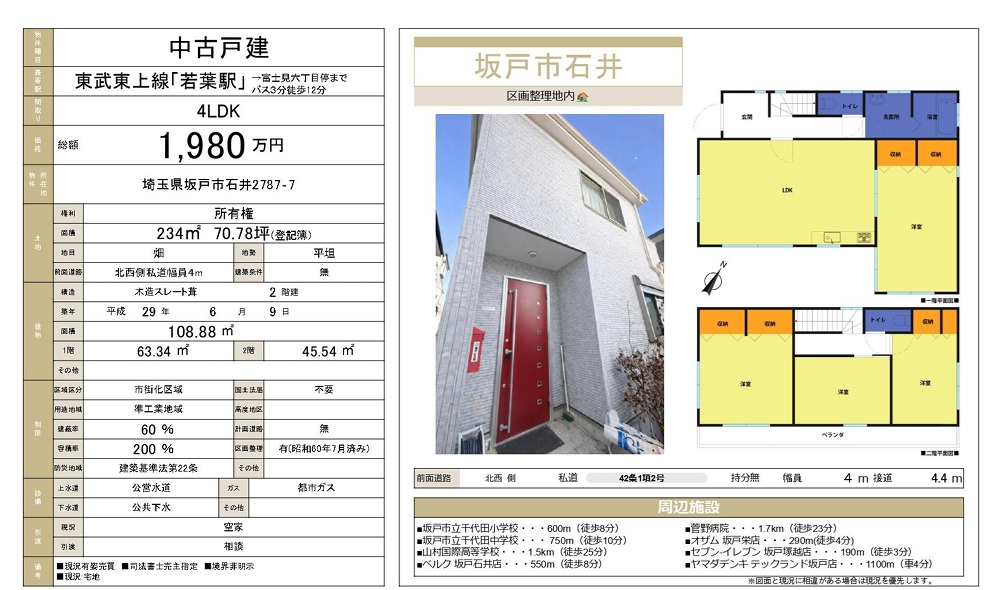 【3110】東武東上線「坂戸」駅バス17分「山崎電機」バス停徒歩1分 「中古住宅」