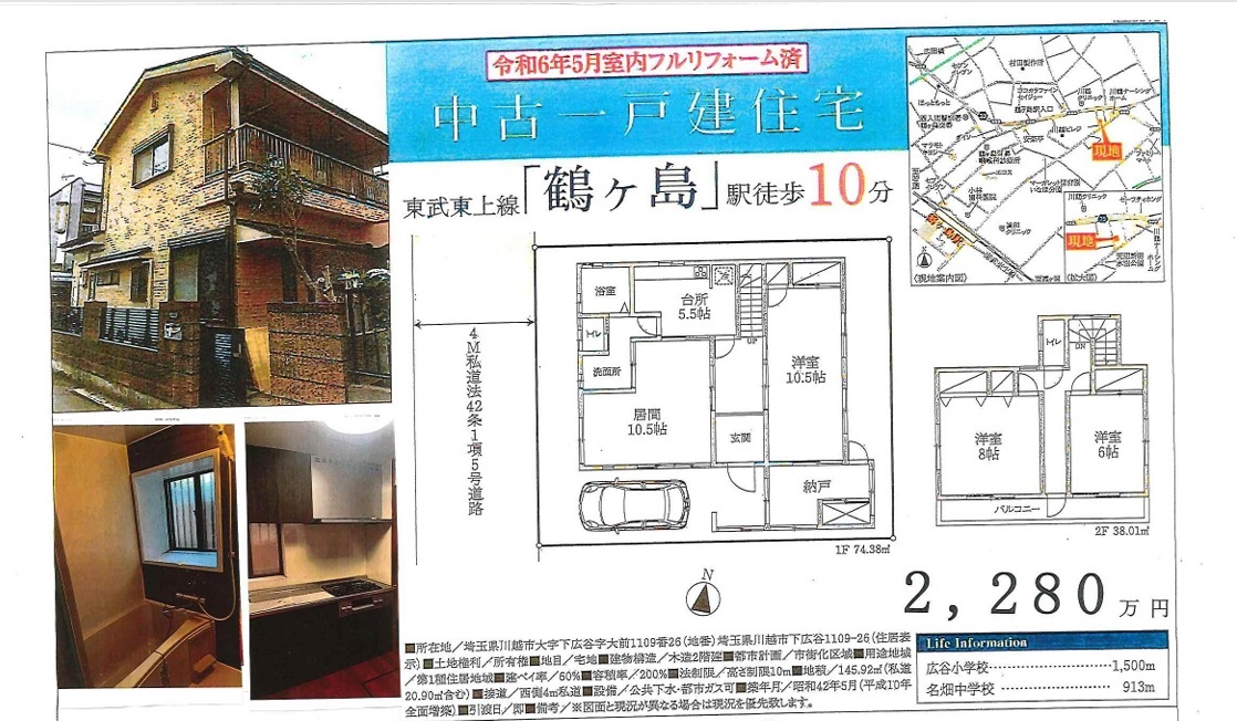 中古住宅 / 2,280万円 / 川越市大字下広谷/ 鶴ヶ島駅徒歩約10分