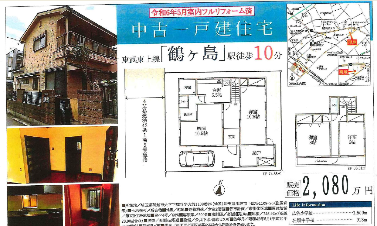 中古住宅 / 2,080万円 / 川越市大字下広谷/ 鶴ヶ島駅徒歩約10分