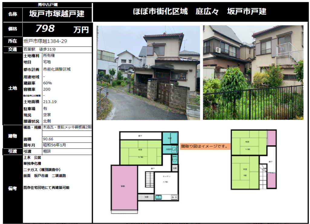 中古住宅 / 798万円 / 坂戸市大字塚越 /若葉駅徒歩31分