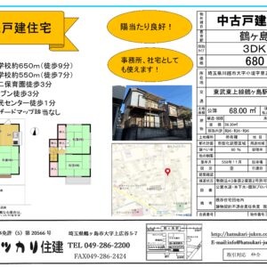 【3157】東武東上線「鶴ヶ島」駅徒歩20分 「中古住宅」