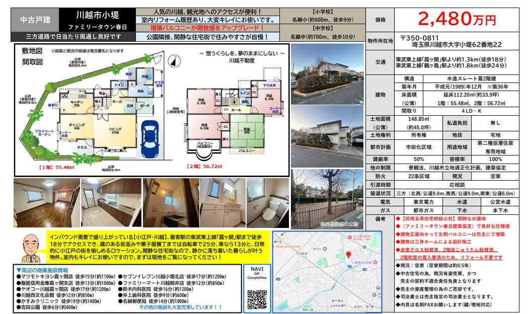 【3159】東武東上線「霞ヶ関」駅徒歩14分 「中古住宅情報」
